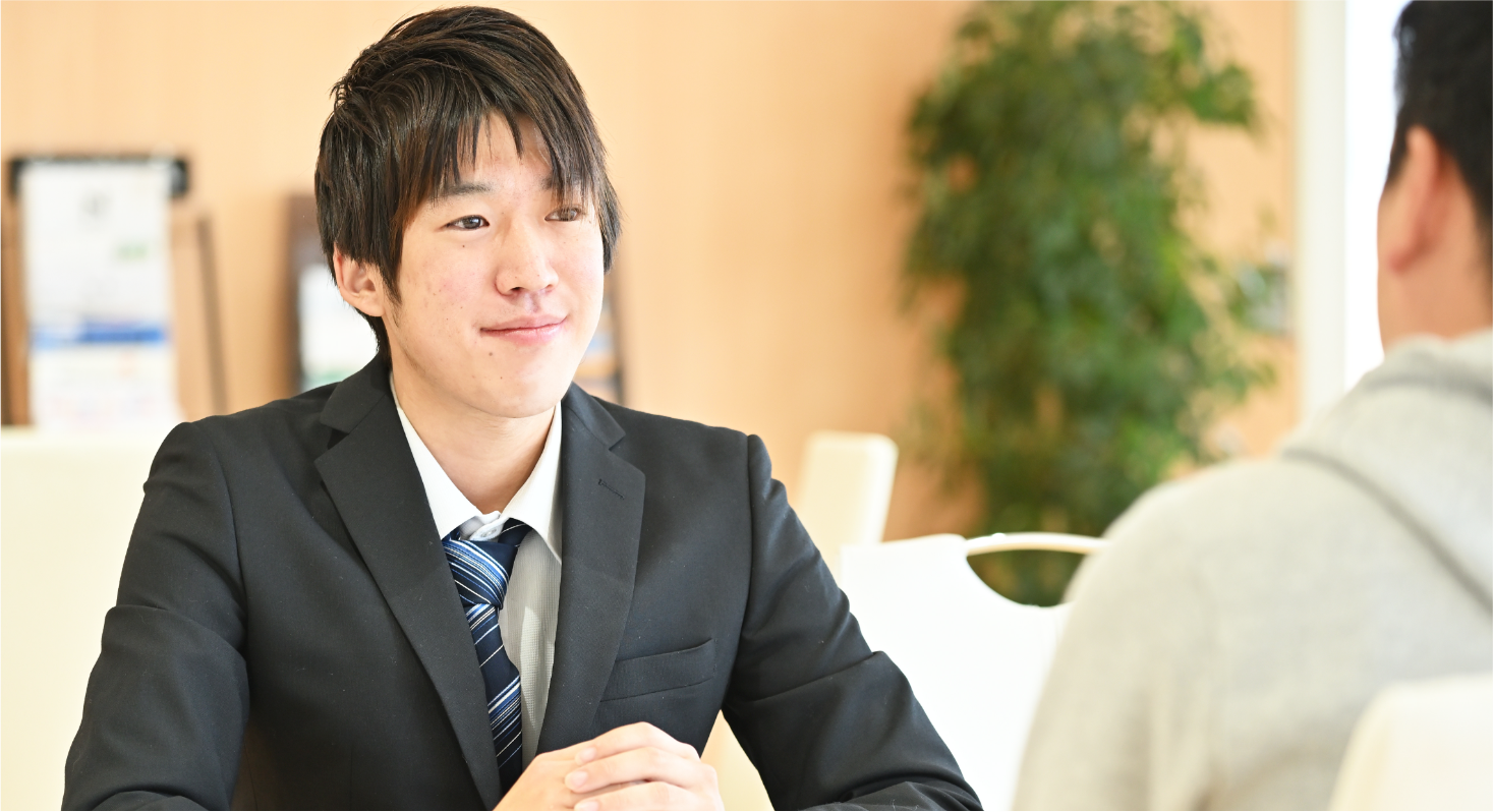 先輩の社員の方は、入社当時からとても熱心に指導してくれました。お客様がどのような事でお困りか、予め想定して、ケーススタディを学びました。「そういう時はこうしたらお客様が損しないよ」「お客さんのためになる提案してあげて」等、指導を受けました。実際、お客様の前でも、比較的スムーズにお話出来たのも練習の成果だと思います。