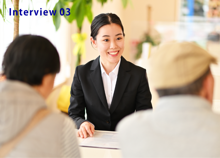 お客様と接している時は、お話をしっかりお聞きすること、お客様に話しやすいと思って頂けるような雰囲気や笑顔などを意識しています。